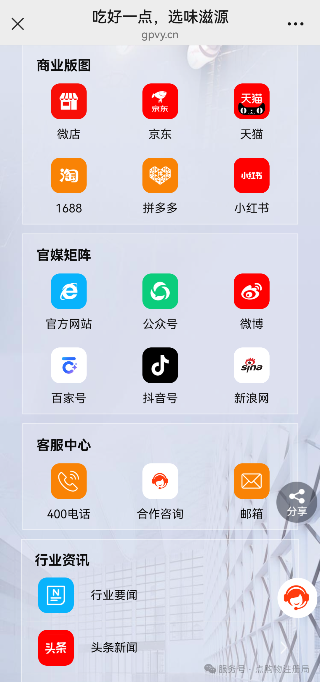 味滋源还将自身的小程序商城、自媒体公众号、官网等平台信息集成在公信导航页,消费者无论是扫描导航码,还是在浏览器输入域名,都能快速获取味滋源全方位的信息,进一步加深品牌印象。