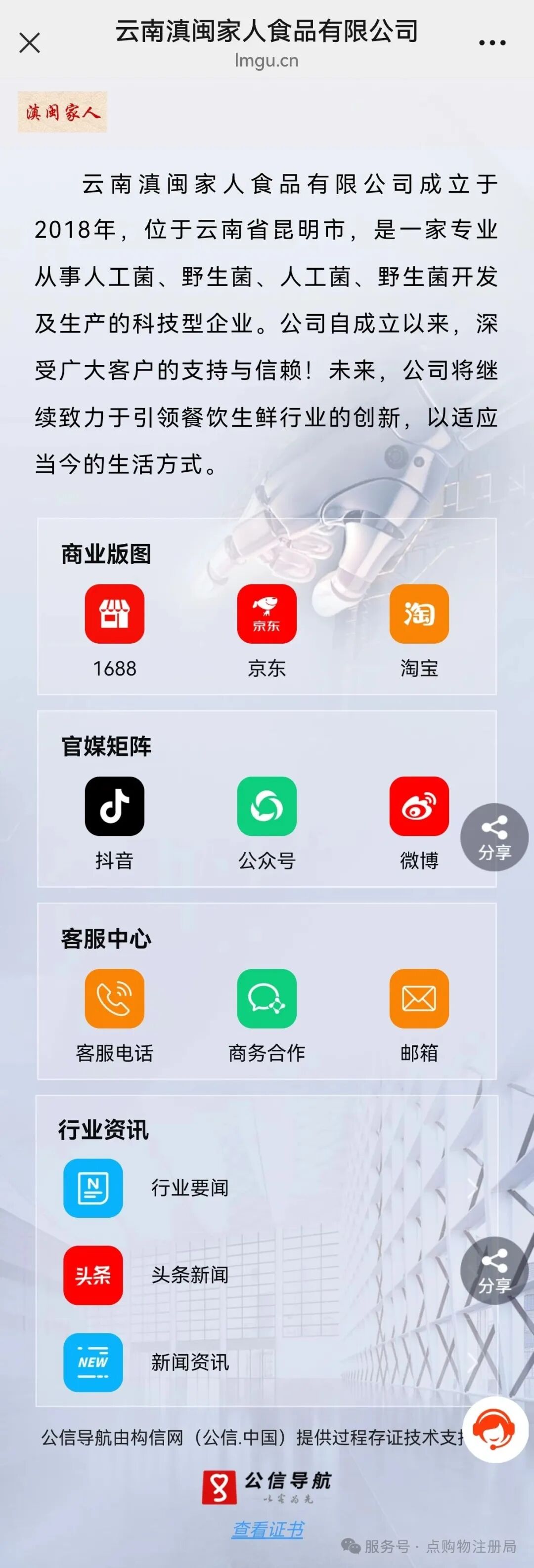 同时,借助公信导航的主体核验技术,对滇闽家人的企业资质进行权威认证,并将认证结果直观展示给消费者,这种透明化的展示,让消费者买得安心、吃得放心,有力地促进了消费者的购买决策和复购意愿。